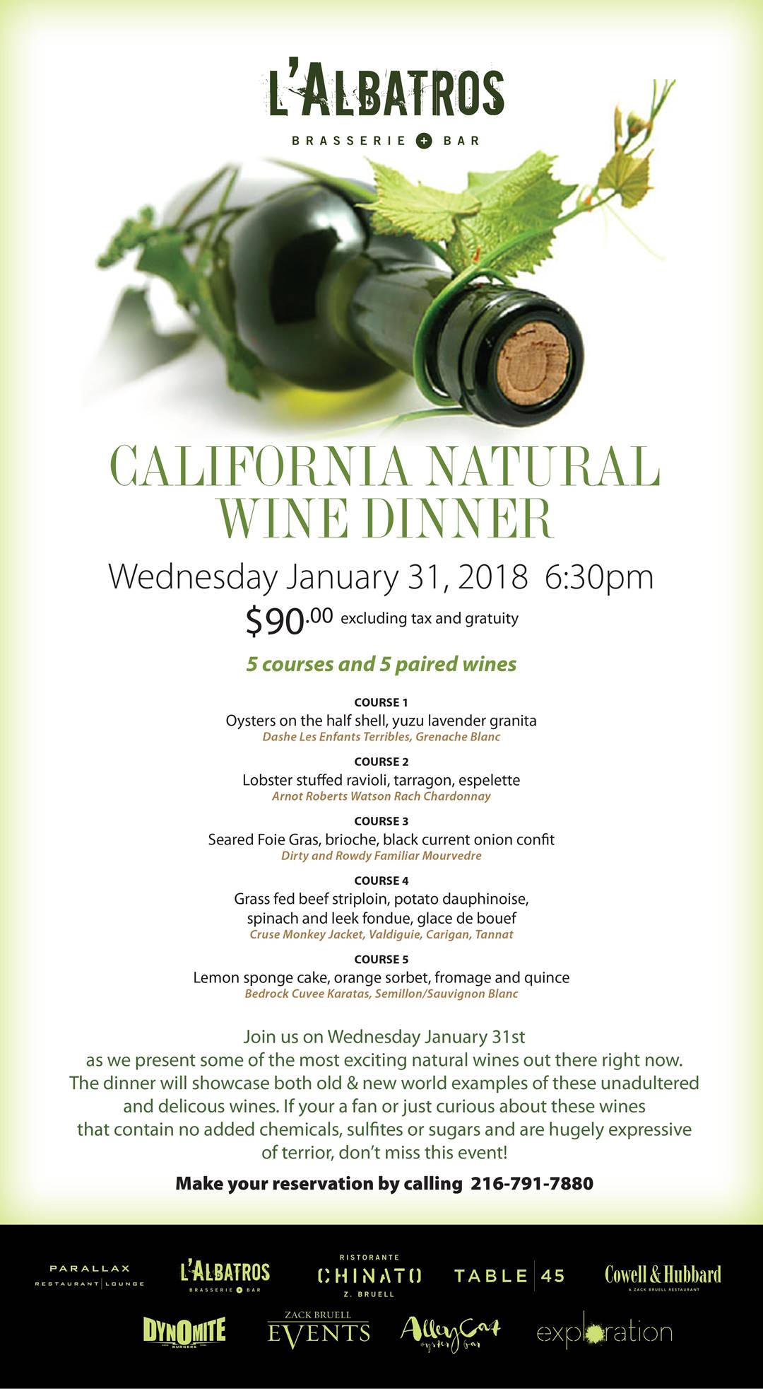 L’Albatros California Wine Dinner – Wednesday January 31 – 6:30